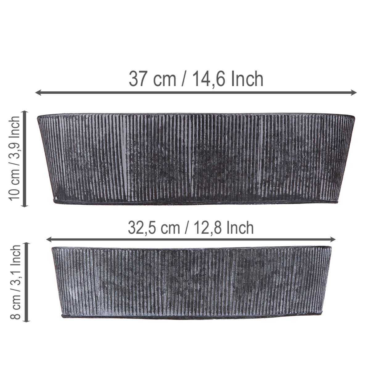 A tigela oval feita de metal e preto combina elegância e estilo com uma estética vintage charmosa que valorizará sua casa. Seja como uma tigela decorativa atraente, como uma decoração de mesa nostálgica ou como uma tigela de flores rústica - este conjunto de duas tigelas de metal empilháveis abre inúmeras possibilidades criativas. O elegante esquema de cores em preto, cinza lavado, assim como o design com ranhuras finas harmonizam perfeitamente com qualquer interior em estilo shabby chic ou industrial. Use as tigelas como recipientes para plantas e adicione um toque de verde com plantas domésticas ou ervas. O menor é perfeito para guardar chaves com estilo ou para suculentas.
