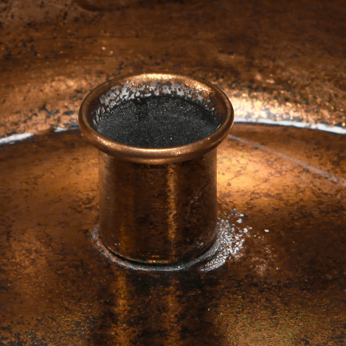 O castiçal cor de bronze com um design antigo adapta-se perfeitamente a qualquer decoração de mesa festiva. Seja no estilo clássico, campestre ou retrô, sua textura e coloração permitem uma ampla gama de opções de combinação com outros elementos decorativos. Os quatro castiçais formam um quadrado no meio da tigela para que você mesmo possa decorar a tigela decorativa para o Advento ou o Natal. Mas por si só, a tigela com castiçais cônicos integrados é uma decoração de mesa maravilhosa e que economiza espaço durante todo o ano, que você pode redesenhar continuamente e decorar de várias maneiras com velas cônicas coloridas.
