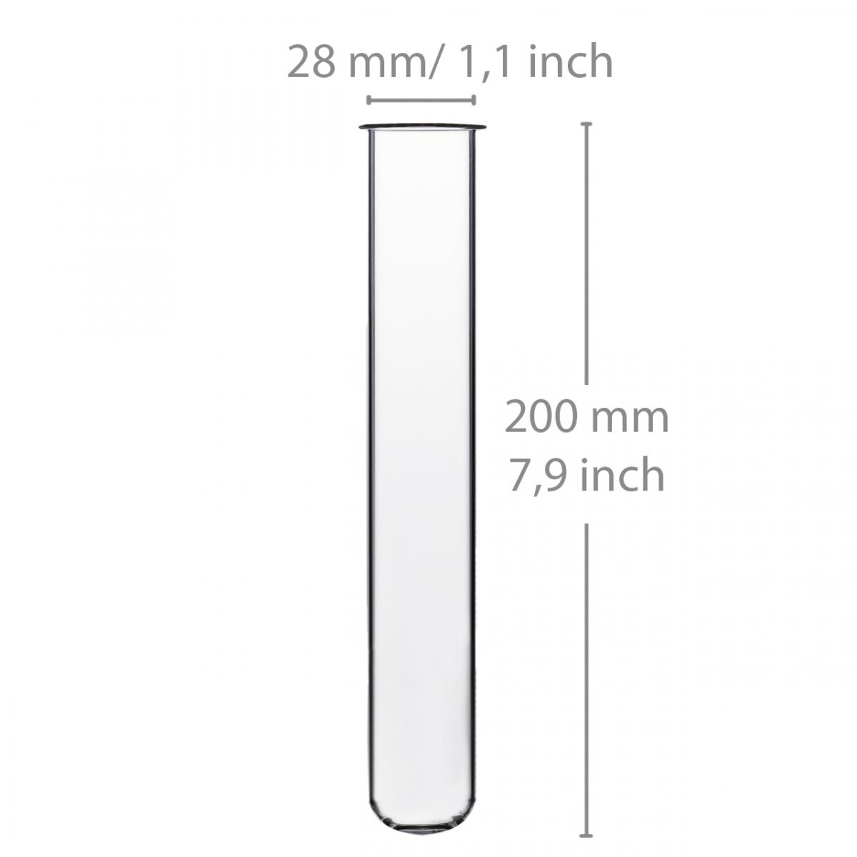O tubo de ensaio tem uma borda frisada, resultando em um diâmetro externo de aproximadamente 34 milímetros, enquanto o diâmetro interno é de aproximadamente 27 milímetros. No total, o tubo da flor tem cerca de 200 milímetros de comprimento.
