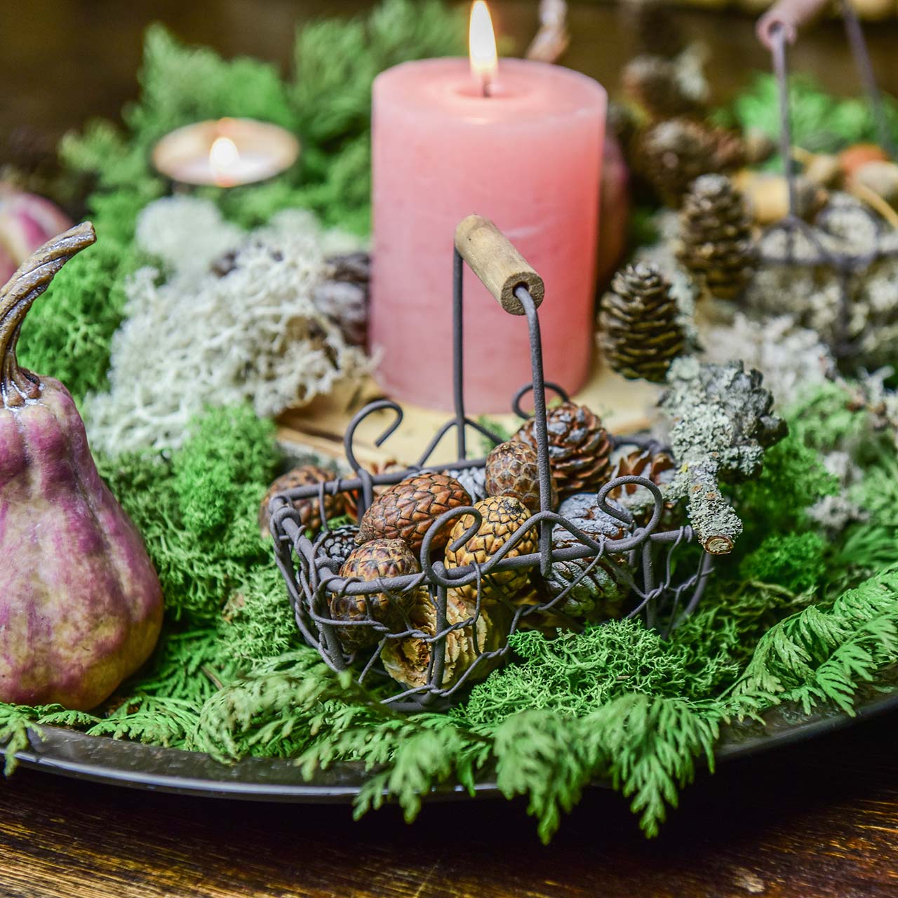 As pequenas cestas de arame em tamanho miniatura são projetadas fielmente aos detalhes, como as grandes cestas de metal: A estrutura e o reforço são feitos de metal sólido e cobertos com uma tela de arame de metal resistente. A pega do cesto decorativo metálico sobe e tem pega em madeira. Um ornamento de metal decorativo curvo é preso às laterais das alças da cesta. - O conjunto inclui três formas de cesta: uma cesta com alça redonda, uma oval e uma retangular.