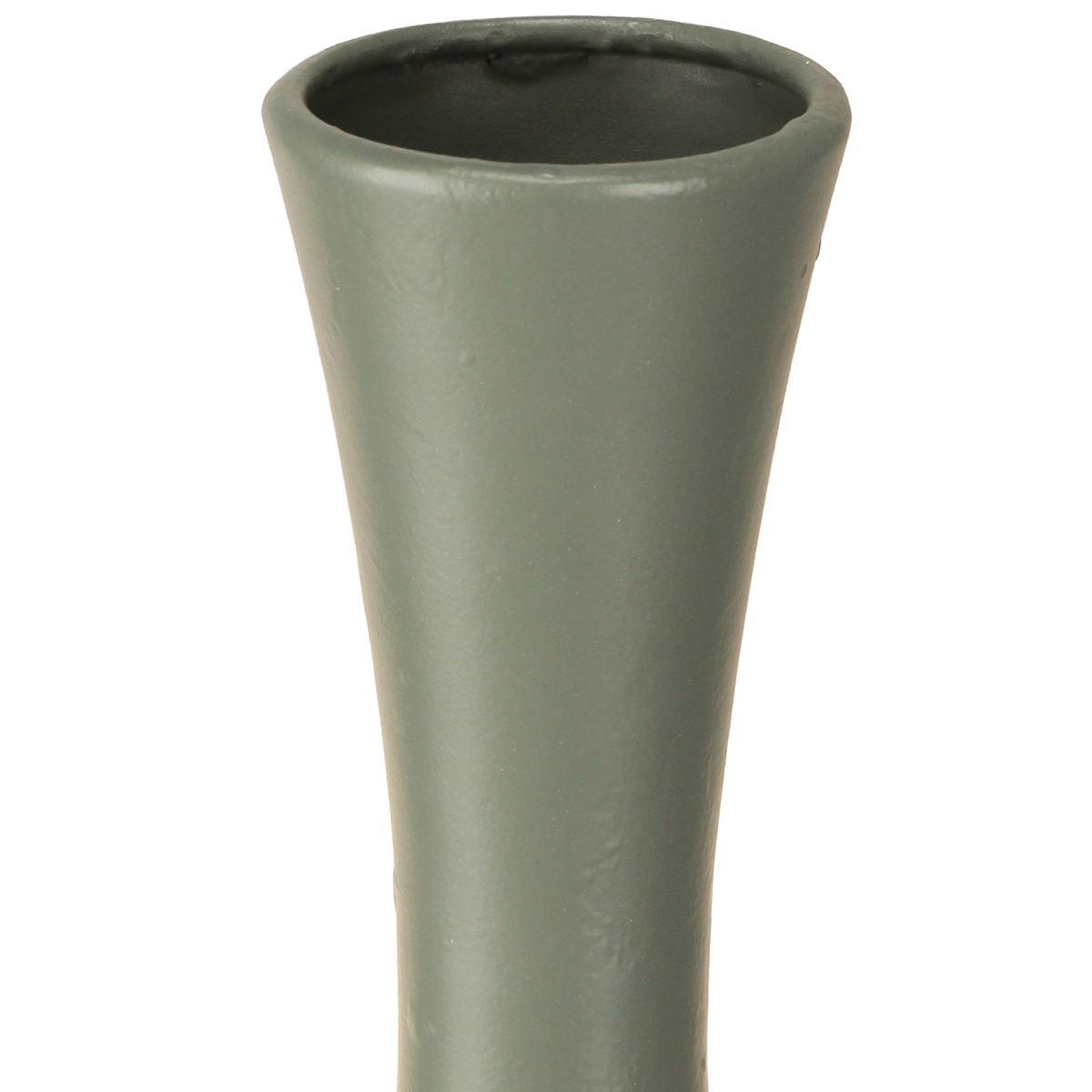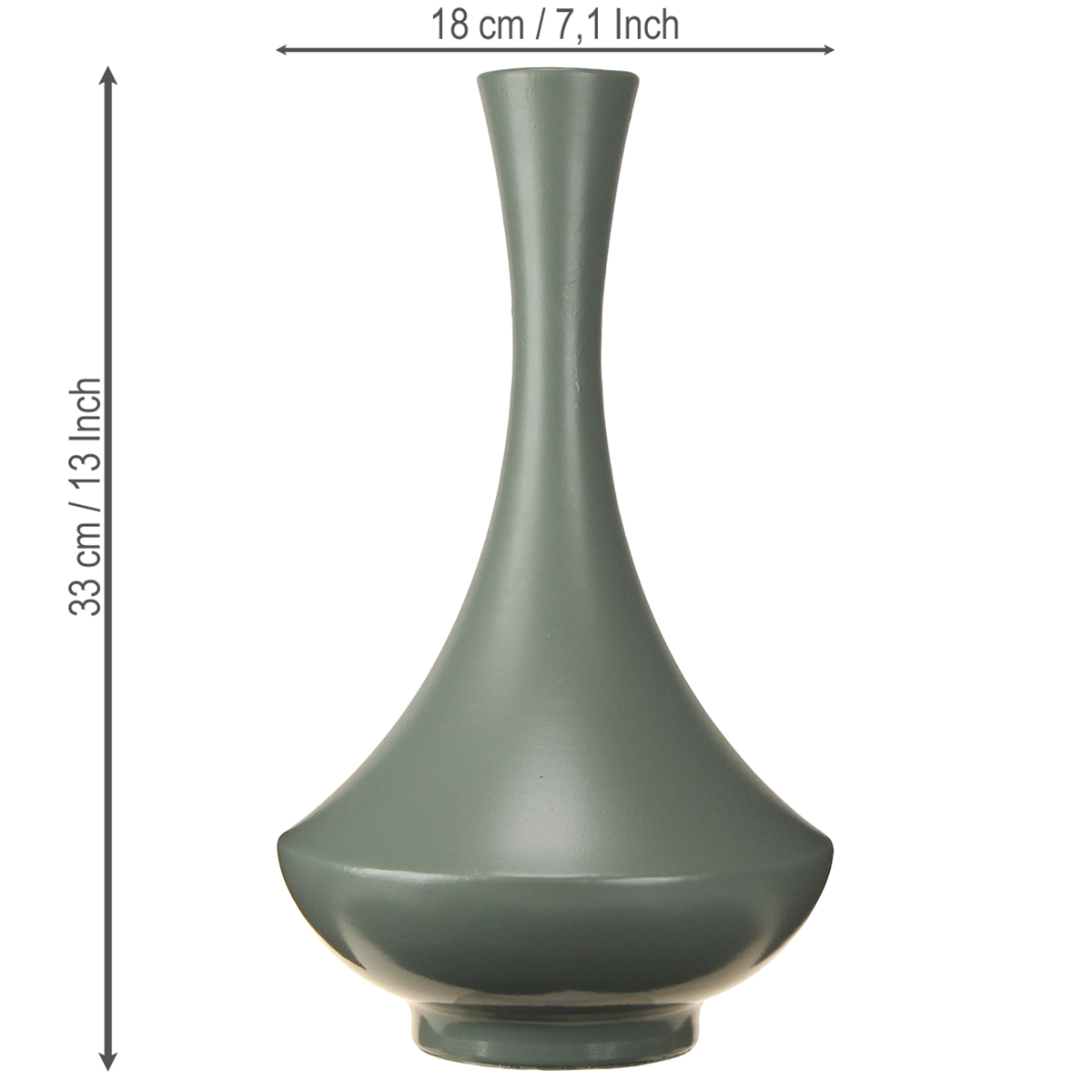 Este vaso decorativo cativa com seu formato harmoniosamente curvo e acabamento em metal de alta qualidade. O acabamento verde fosco é discreto e elegante, enfatizando seu caráter moderno. Seja usado como peça central na sala de jantar, como um detalhe decorativo em uma cômoda ou como um elemento estiloso em uma mesa de escritório, sua versatilidade o torna um acessório indispensável para qualquer casa. Com 33 cm de altura, tem o tamanho perfeito para se integrar harmoniosamente a qualquer ambiente, sem deixar de ser um destaque. Quem aprecia uma estética minimalista vai adorá-lo – mas também fica lindo quando combinado com outras peças decorativas.