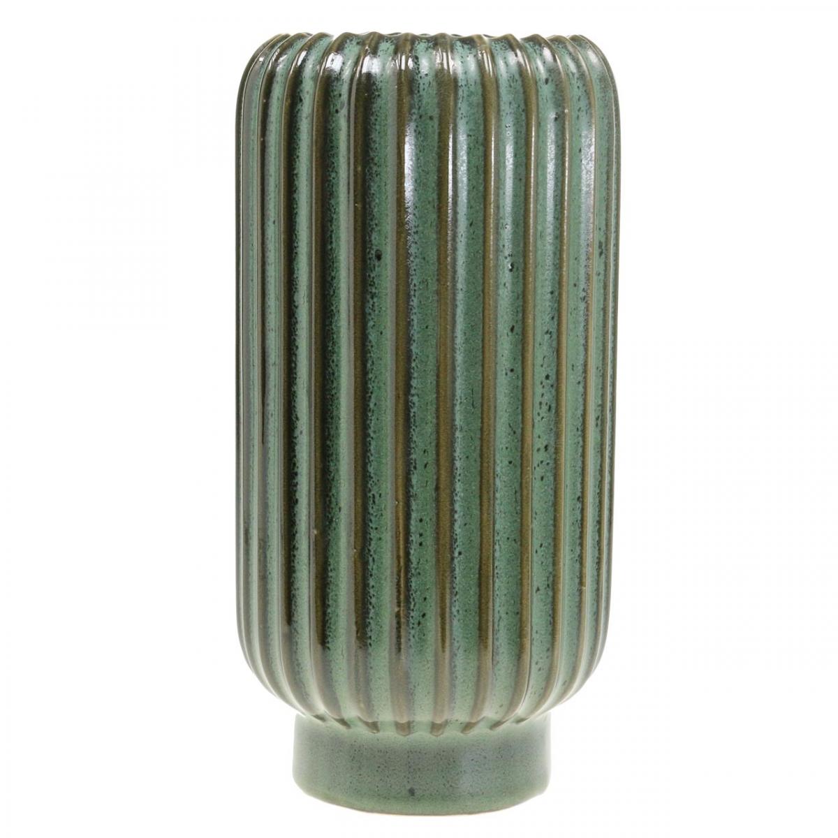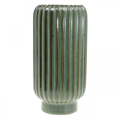 Vaso de cerâmica, decoração de mesa, vaso decorativo canelado verde, castanho Ø10,5cm Alt.21,5cm