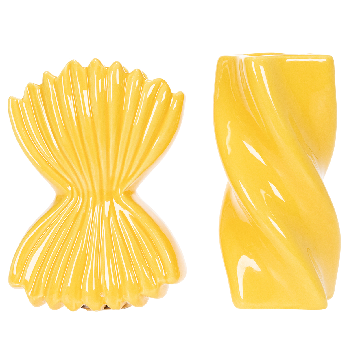 Estes vasos decorativos de cerâmica cativam à primeira vista com seu design excepcional, inspirado nas formas lúdicas das populares massas italianas. Perfeitos para quem aprecia decorações originais e peças de design moderno! A combinação do amarelo vibrante com o design detalhado torna estes vasos um acessório elegante para salas de estar ou escritórios com estilo mediterrâneo. Combine estas peças de design com uma toalha de mesa simples ou uma decoração de inspiração mediterrânea para um visual harmonioso.