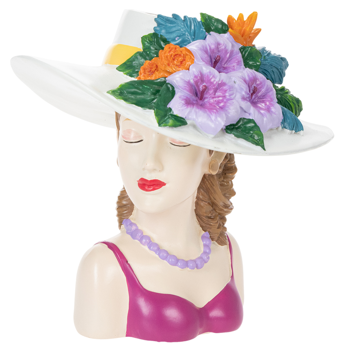 Vaso de flores em forma de mulher de chapéu com flores, para decoração de plantas, para uso interno e externo, 20 cm.