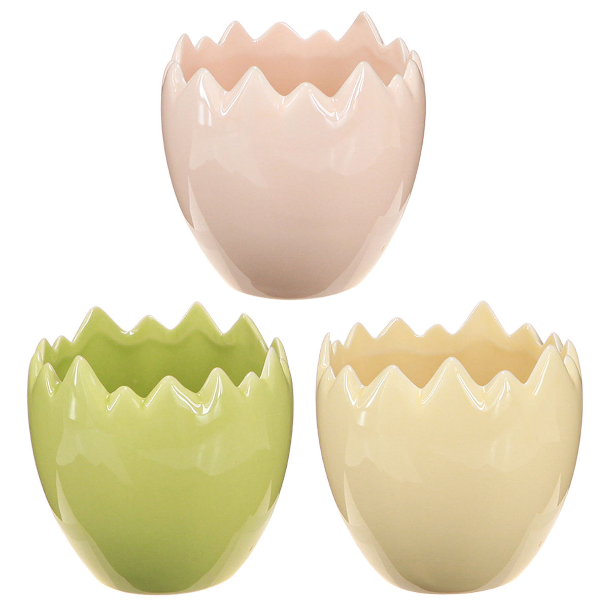 Quem não gosta de embelezar a casa com pequenos detalhes encantadores? Nossos vasos de flores em formato de ovo, com suas bordas desgastadas, dão um toque especial a qualquer ambiente! Seja no parapeito da janela, na mesa ou em um arranjo decorativo, esses vasos oferecem inúmeras possibilidades para exibir de forma criativa pequenas plantas, flores da primavera ou até mesmo decorações de Páscoa. Que parapeito de janela não ganha um toque de frescor primaveril quando esses charmosos vasos são colocados sobre ele? A combinação clássica de cores pastel — amarelo suave, rosa e verde vibrante — faz desses vasos de flores um complemento harmonioso para qualquer estilo de decoração. E a melhor parte: eles vêm em um prático conjunto de três, perfeito para ideias de decoração individuais!