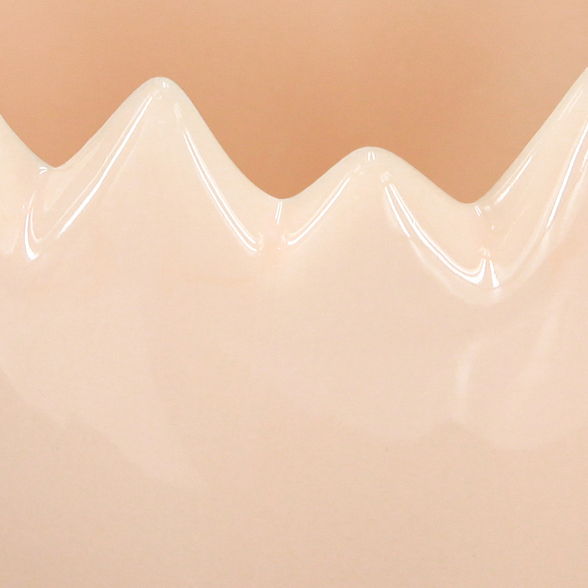 - Design em formato de ovo com borda decorativa e irregular.