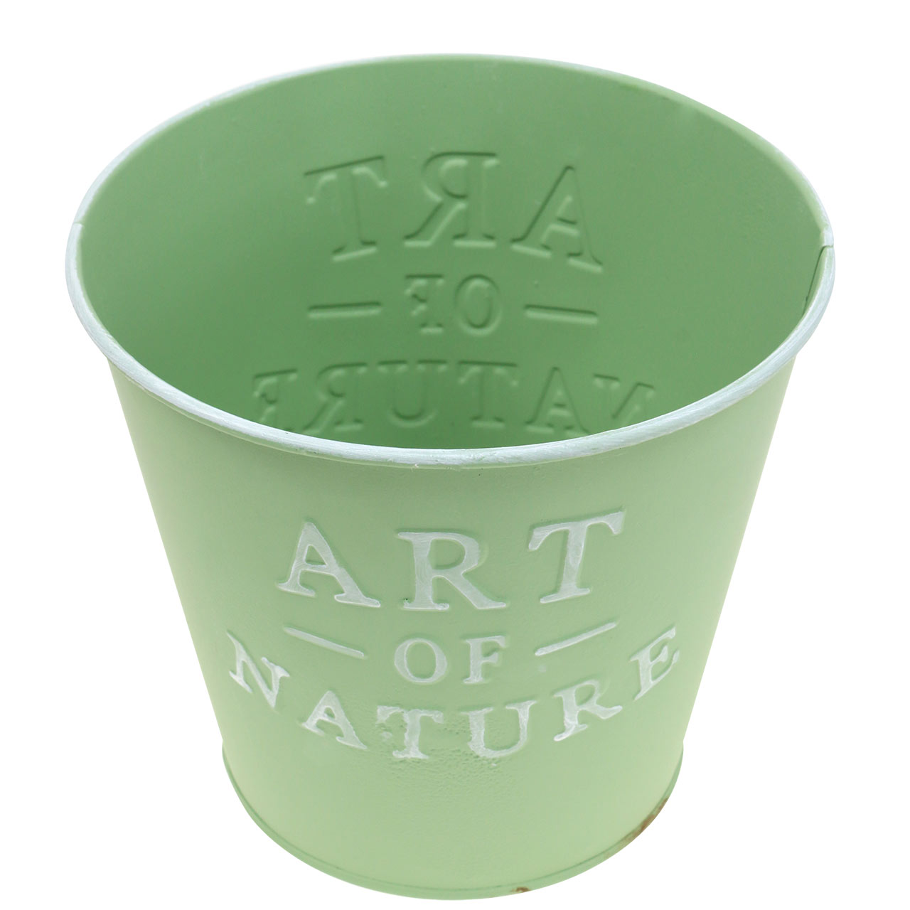 O vaso decorativo de zinco é mais do que apenas um vaso de plantas. Com sua coloração especial e a inscrição "Arte da Natureza" caiada de branco, o vaso de metal torna-se uma peça central decorativa. Com diâmetro em torno de 22 centímetros e altura em torno de 21 centímetros, é ideal para diversas ideias de plantio.