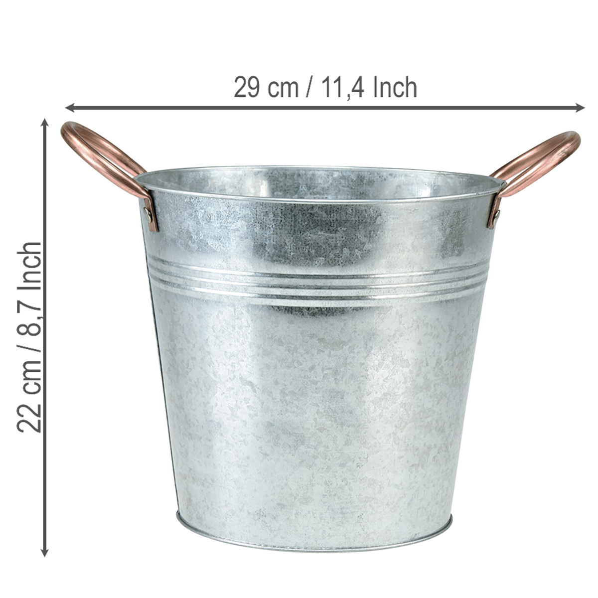 Vaso de metal com alças, balde decorativo, Ø21cm A19,5cm