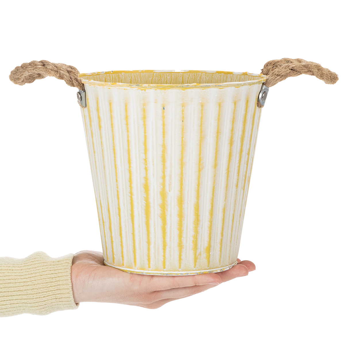 Vaso de metal, decoração de primavera, floreira com alças, amarelo, estilo shabby chic, Ø18cm, A17,5cm