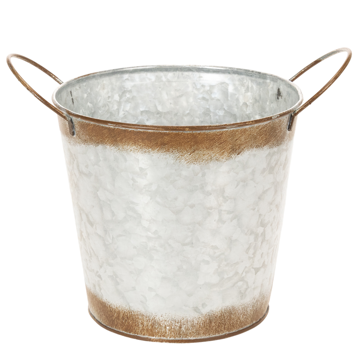Um plantador de metal é perfeito como uma tigela de flores versátil! Você pode plantar diretamente no vaso com alças ou usá-lo como um cachepot atraente.