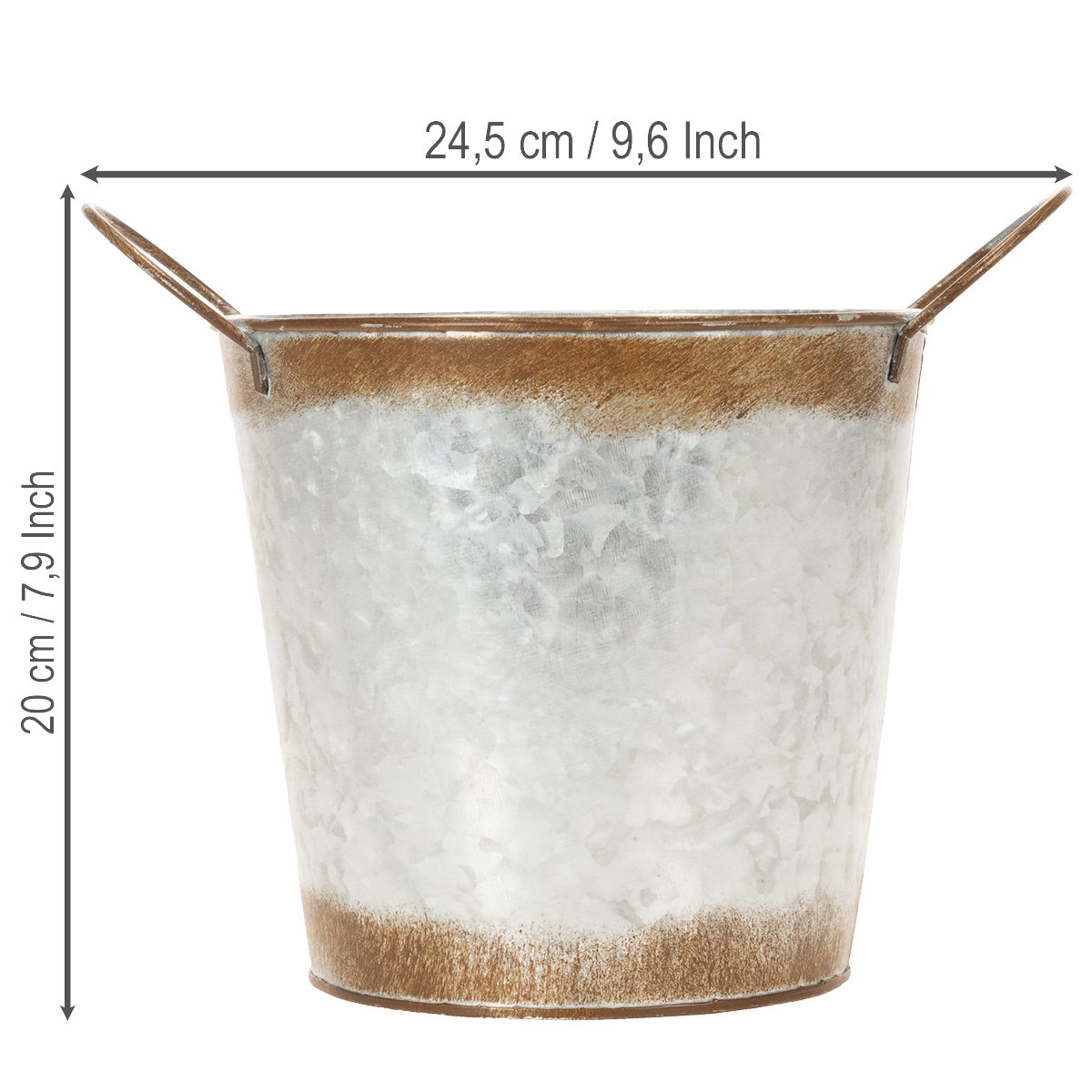 Vaso de metal, floreira, floreira para plantas com alças prateadas, acabamento em aço envelhecido, Ø18cm A20cm