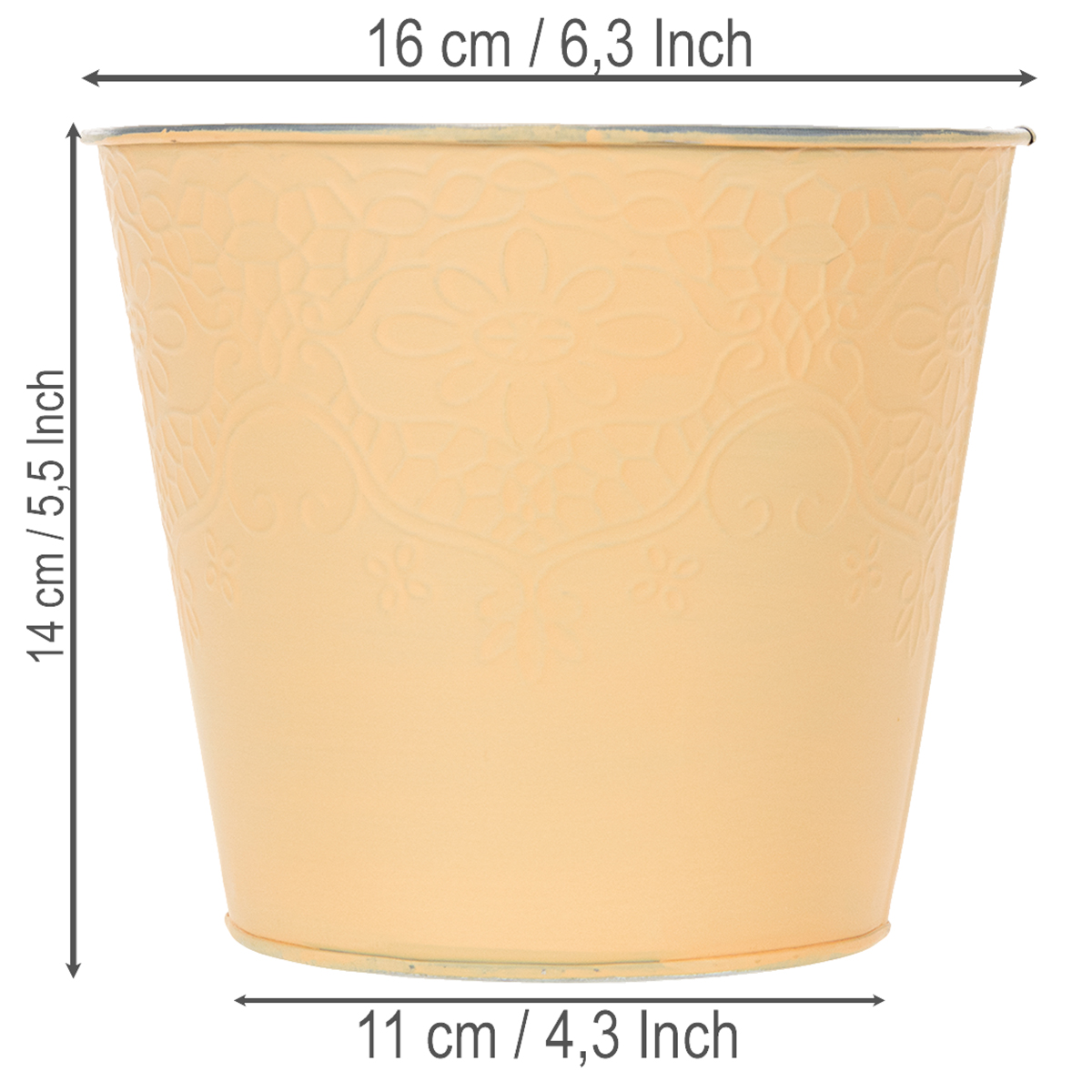 Para uso como vaso de plantas, ainda é aconselhável forrar o vaso com papel alumínio. A decoração de metal não é danificada pela umidade e encharcamento.