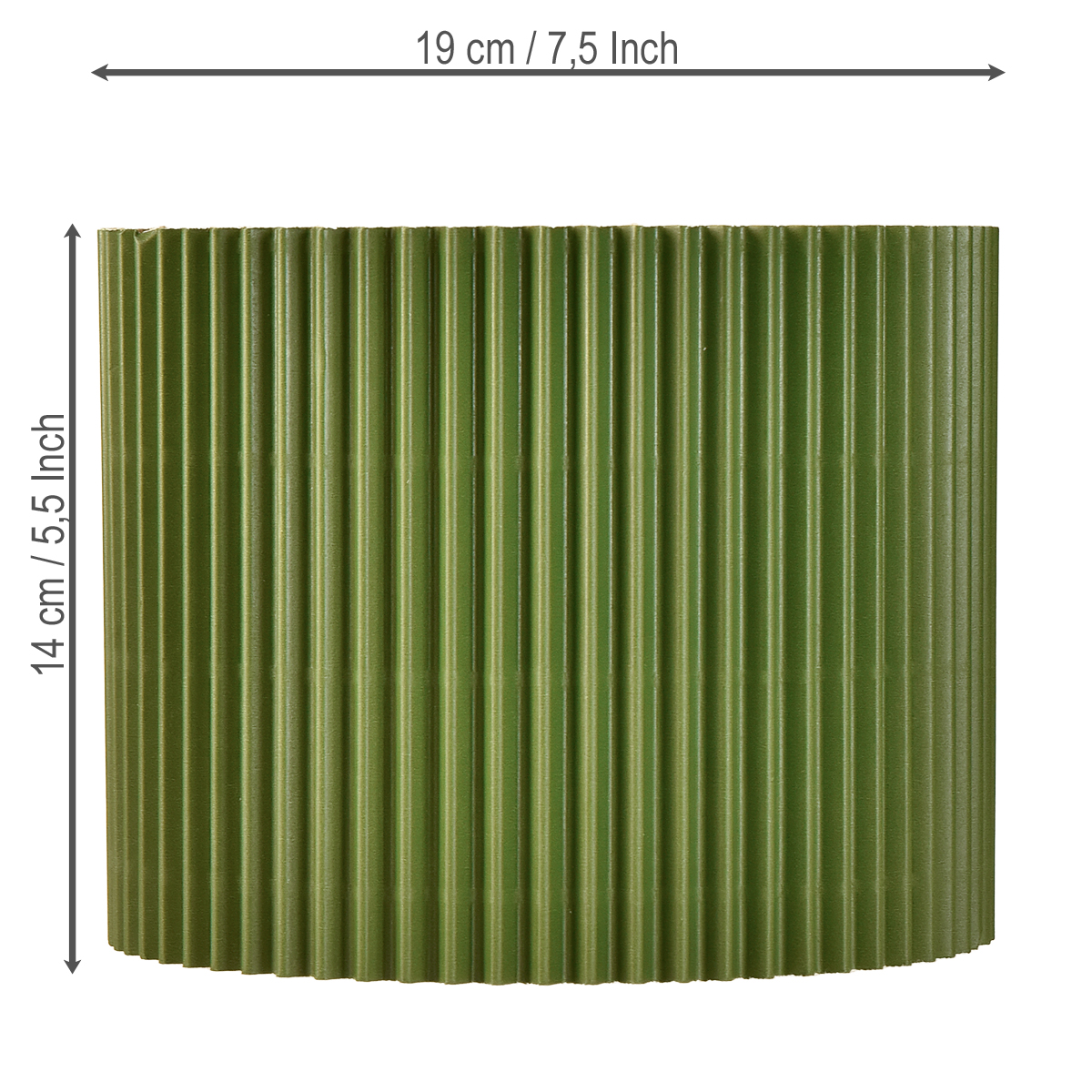 Este elegante vaso de papel verde-escuro adiciona um toque decorativo a qualquer ambiente. Medindo aproximadamente 19 cm de diâmetro e 14 cm de altura, este vaso é ideal para arranjos de plantas de médio porte. O design moderno com exterior canelado confere-lhe uma textura interessante. Isso torna o vaso ideal para salas de estar, escritórios ou como um presente criativo. Observe que o vaso deve ser forrado com papel-alumínio antes de ser usado com plantas vivas para protegê-lo da umidade. O vaso é perfeito para arranjos decorativos de plantas em casa ou para arranjos florais e vitrines.