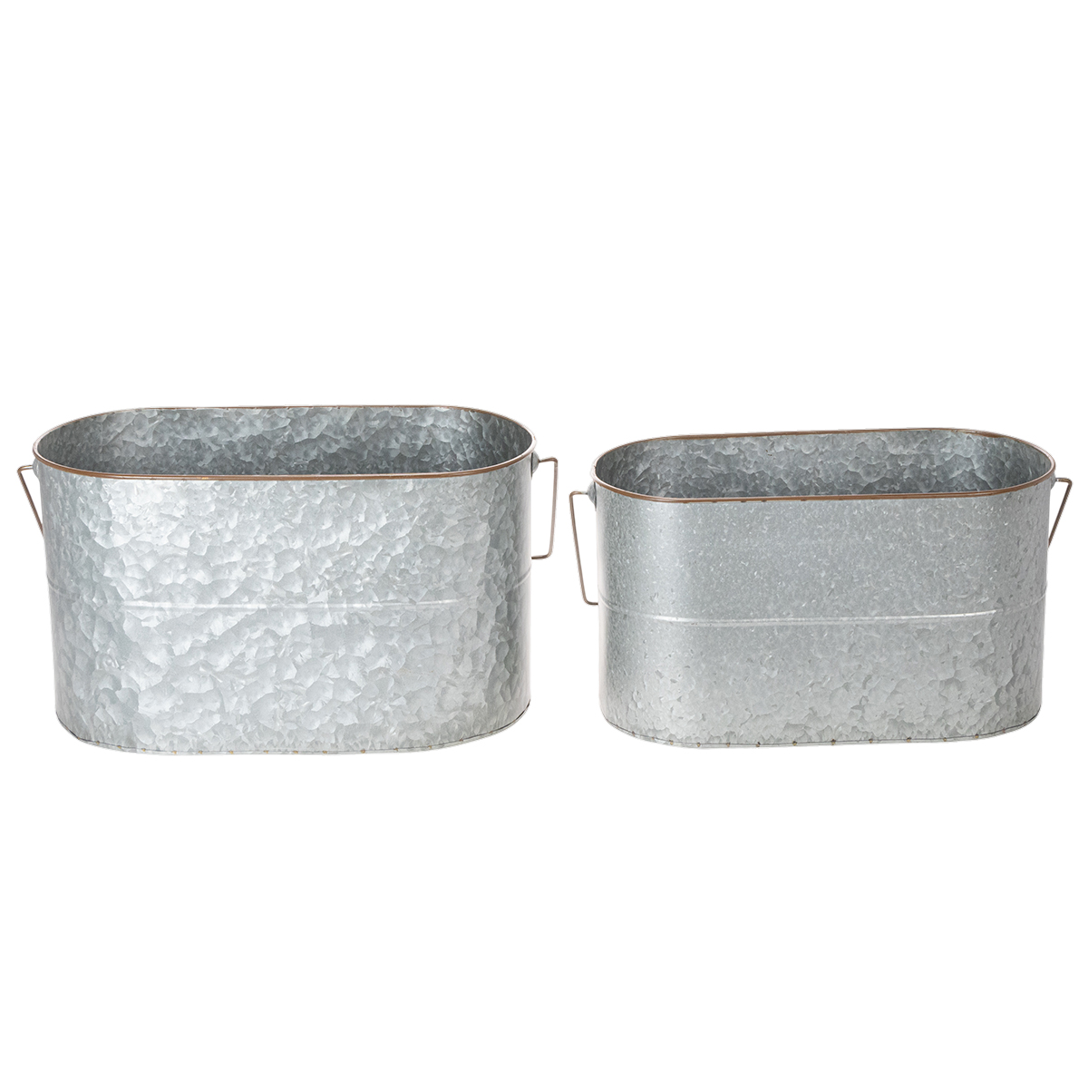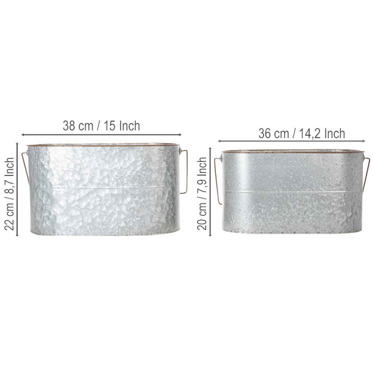 Vaso de plantas com alça, vaso de metal, floreira, prata, marrom, A22/20cm L42/40cm, conjunto de 2