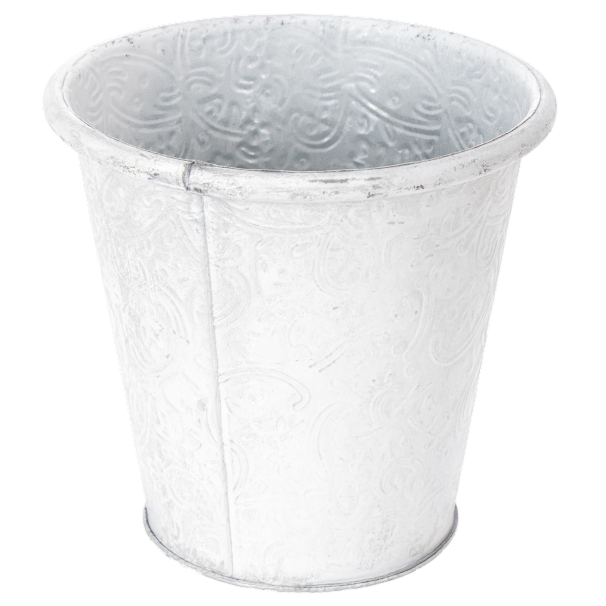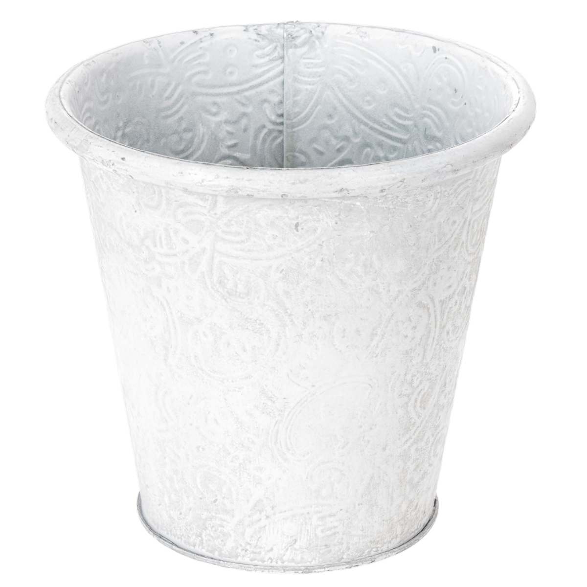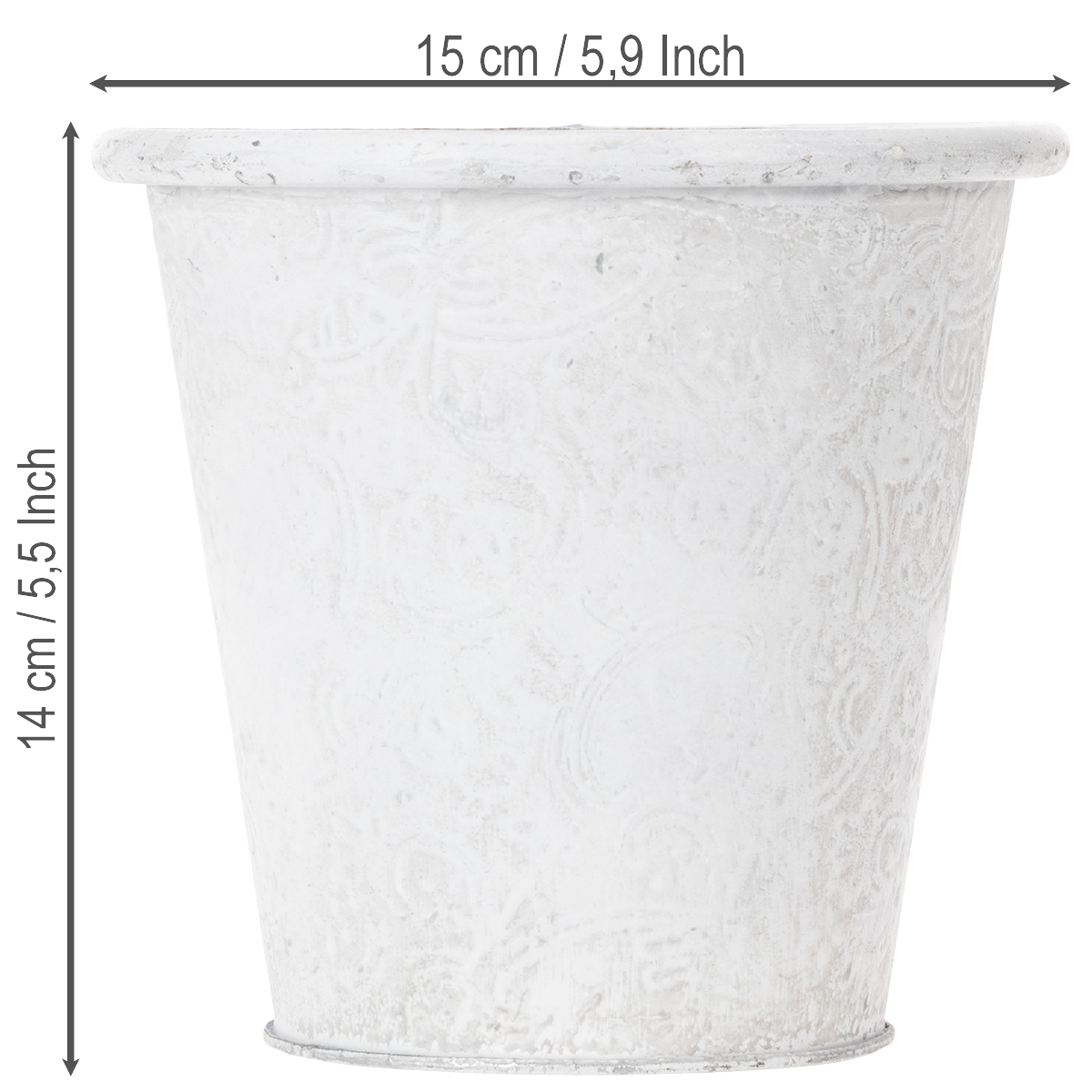 Vaso de plantas com ornamentos, cachepô, recipiente de metal, branco, Ø15,5cm, A14,5cm