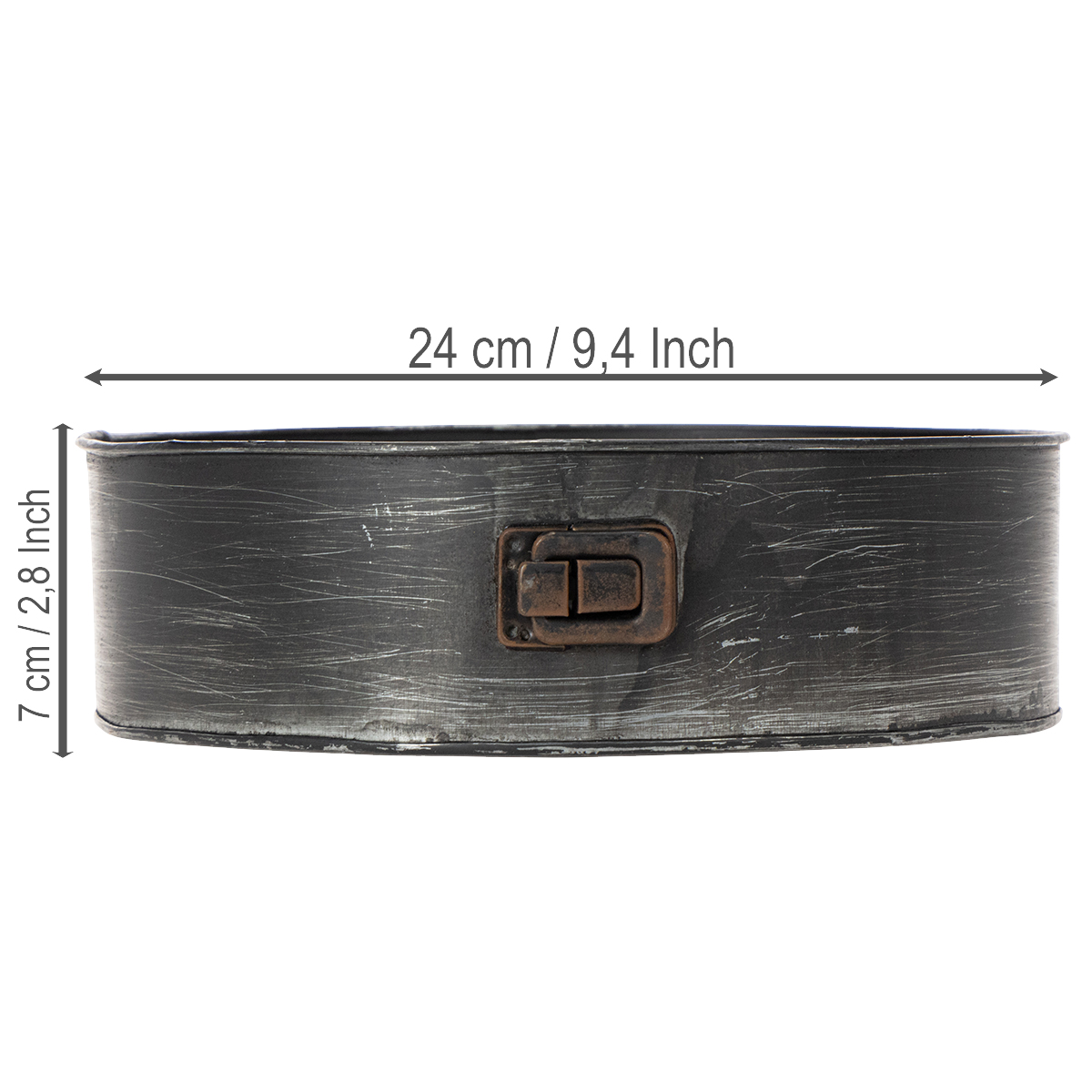 Esta forma decorativa de metal funciona tanto como peça de decoração quanto como vaso! O vaso em formato de aro removível é perfeito tanto como prato para arranjos florais quanto como cachepô para um vaso grande ou vários vasos menores. Também pode ser usado para plantar diretamente na forma. Caso pretenda regar o arranjo floral, forre o recipiente de metal com papel alumínio próprio para plantas previamente.