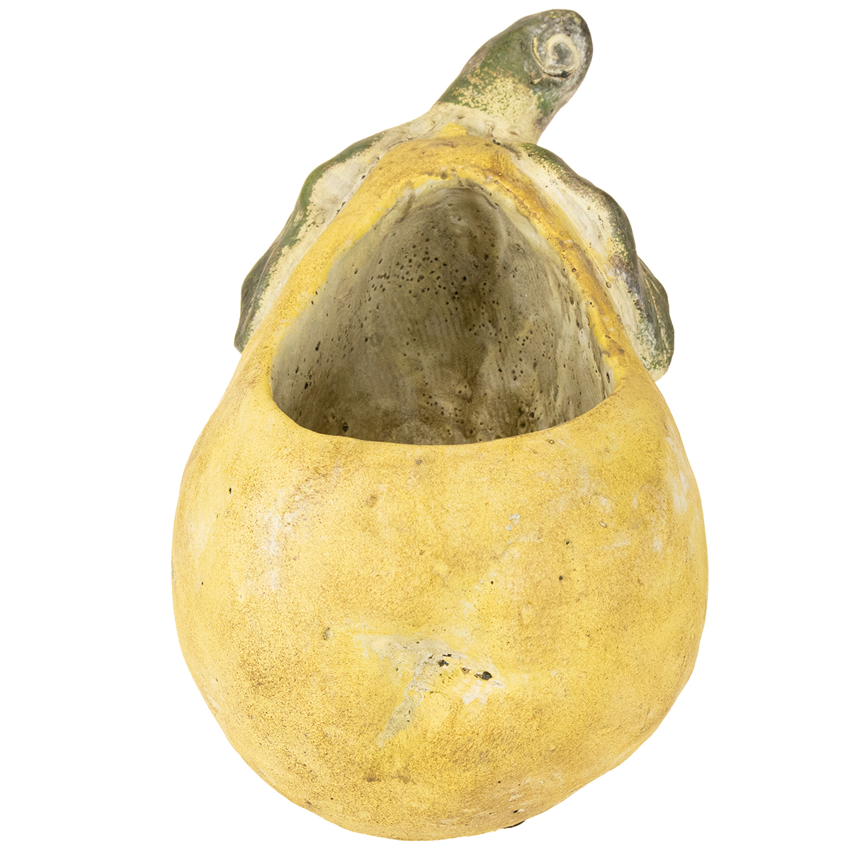 A pêra decorativa é mostrada deitada de lado e tem uma abertura espaçosa na parte superior que pode ser preenchida com todos os tipos de decorações florais. Crie arranjos decorativos rústicos para o final do verão ou outono com as cerâmicas para decorar.
