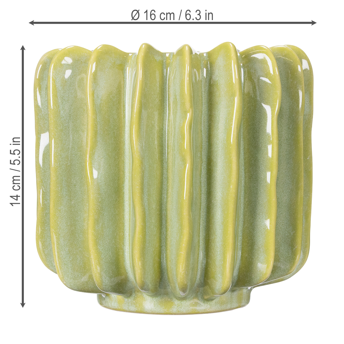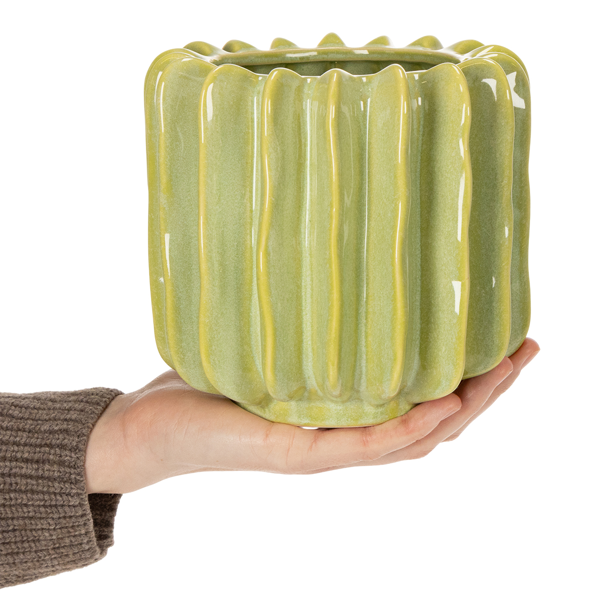 A cerâmica de alta qualidade e o design texturizado e ranhurado tornam este vaso não apenas prático, mas também um elemento decorativo elegante. Ele oferece amplo espaço para suas plantas favoritas – sejam cactos, suculentas ou pequenas folhagens. Seja qual for o seu estilo – boho, minimalista ou urbano –, este vaso de design complementa quase qualquer decoração e certamente será um ótimo assunto para iniciar conversas.