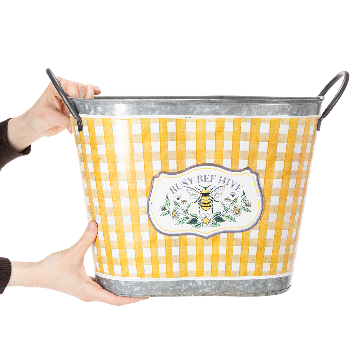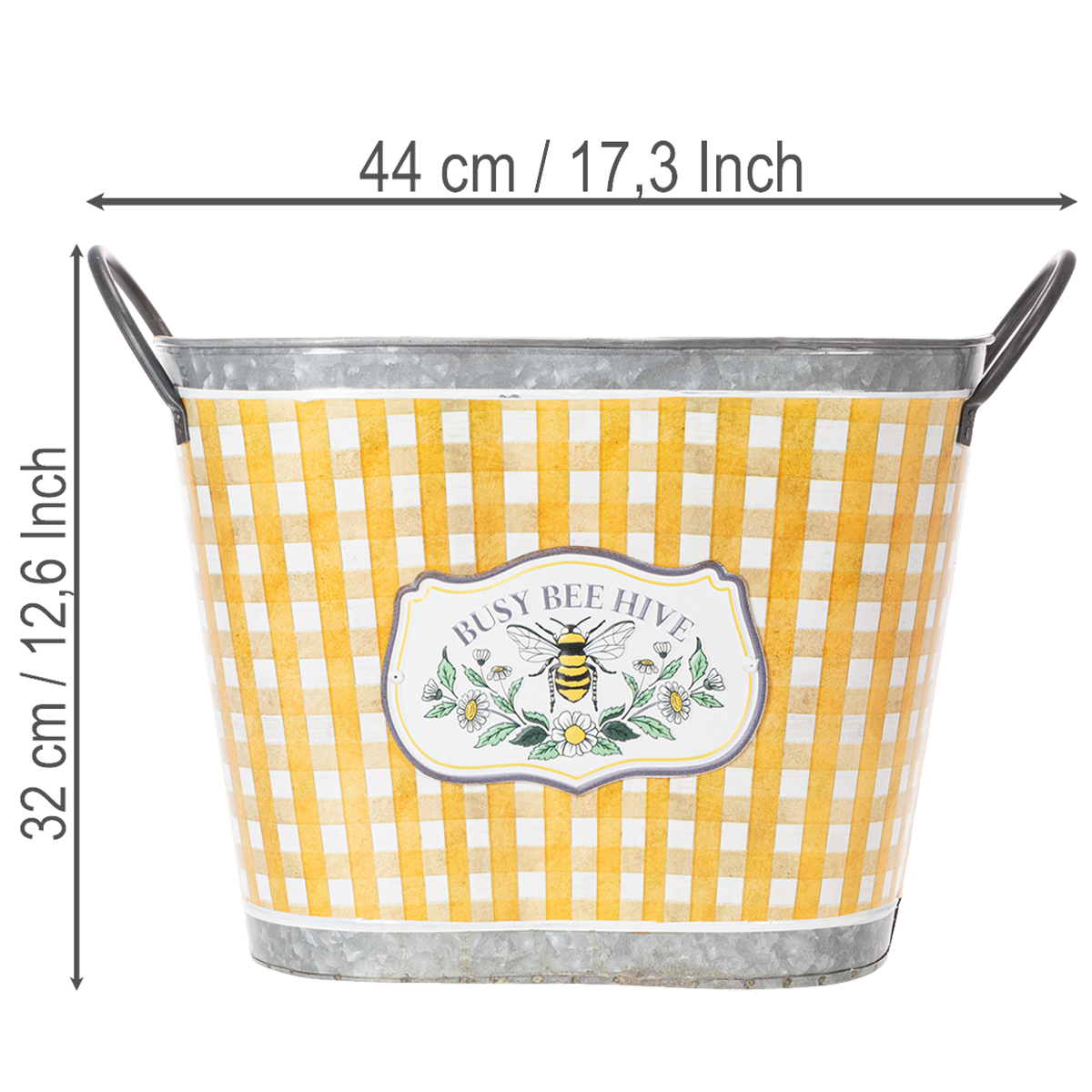 Vaso oval para plantas com desenho de abelha, padrão xadrez, decoração de verão, floreira, 38×24×29cm
