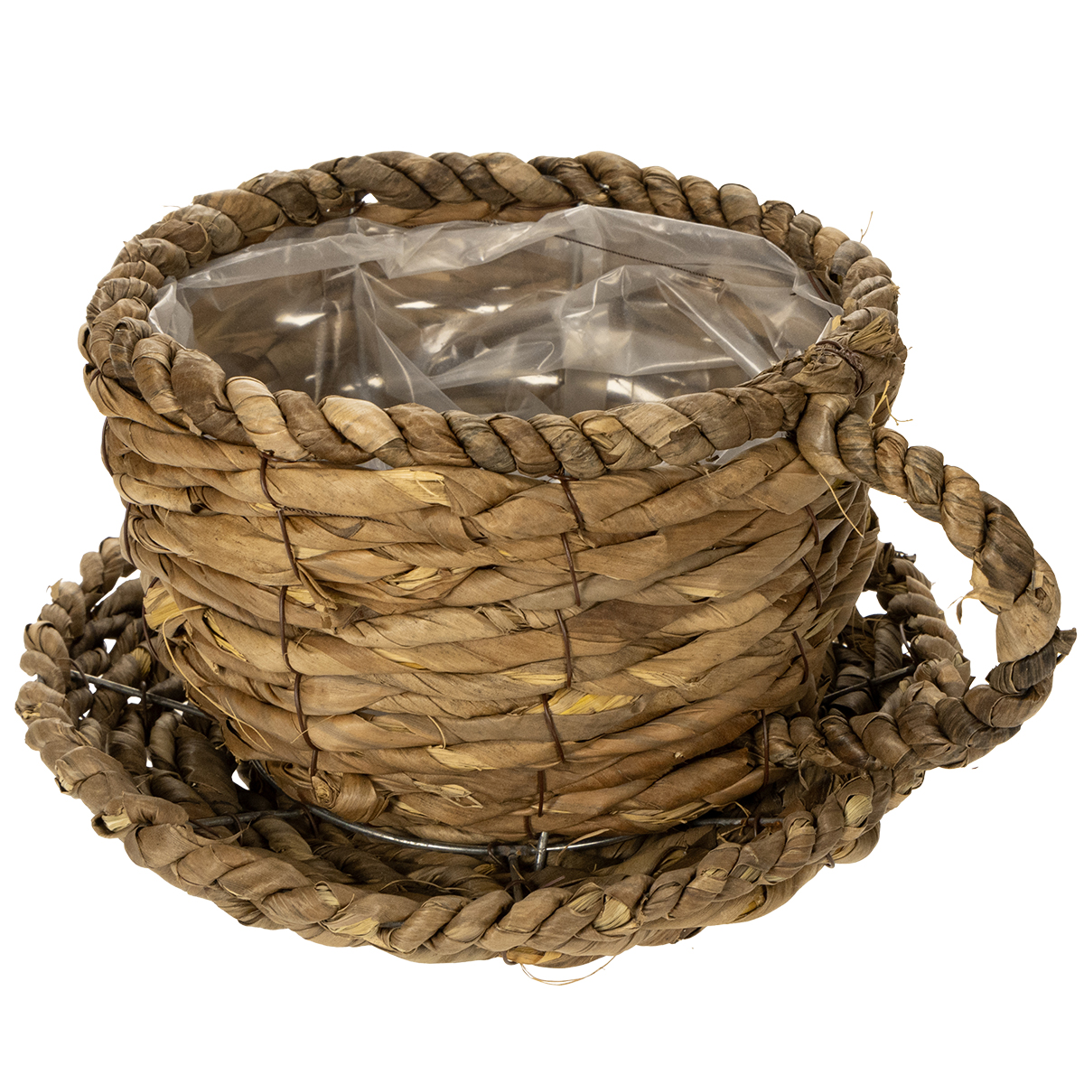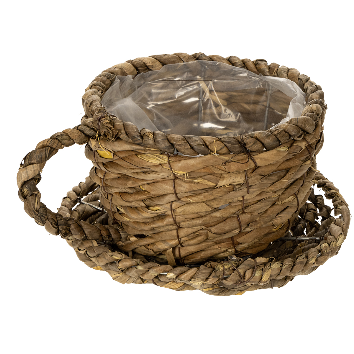 Vaso para plantas com pires, pequeno cesto de palha para plantio, Ø17cm A13cm