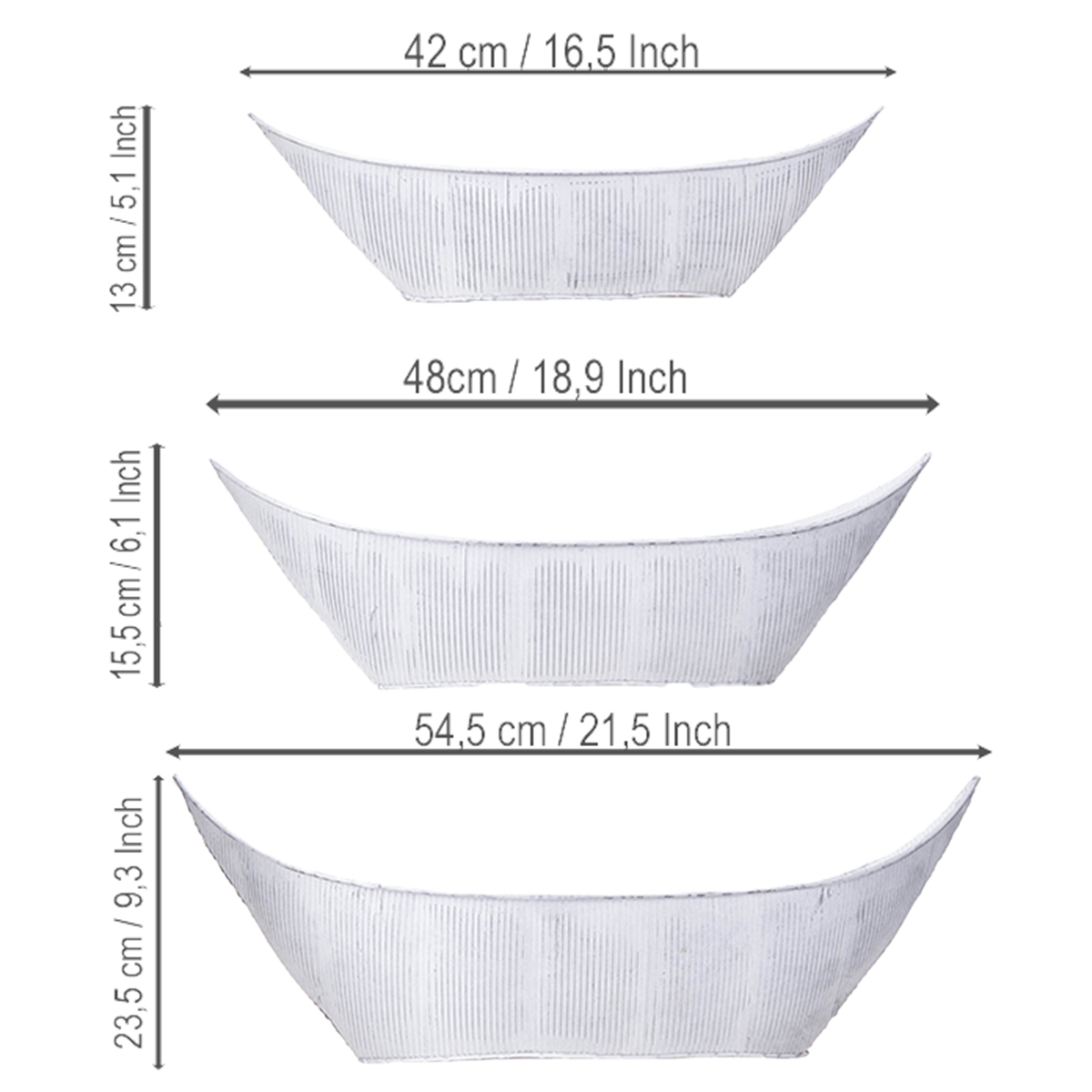 Vaso para plantas em formato de barco, metal, branco/prateado, 54,5/48/42 cm, conjunto de 3