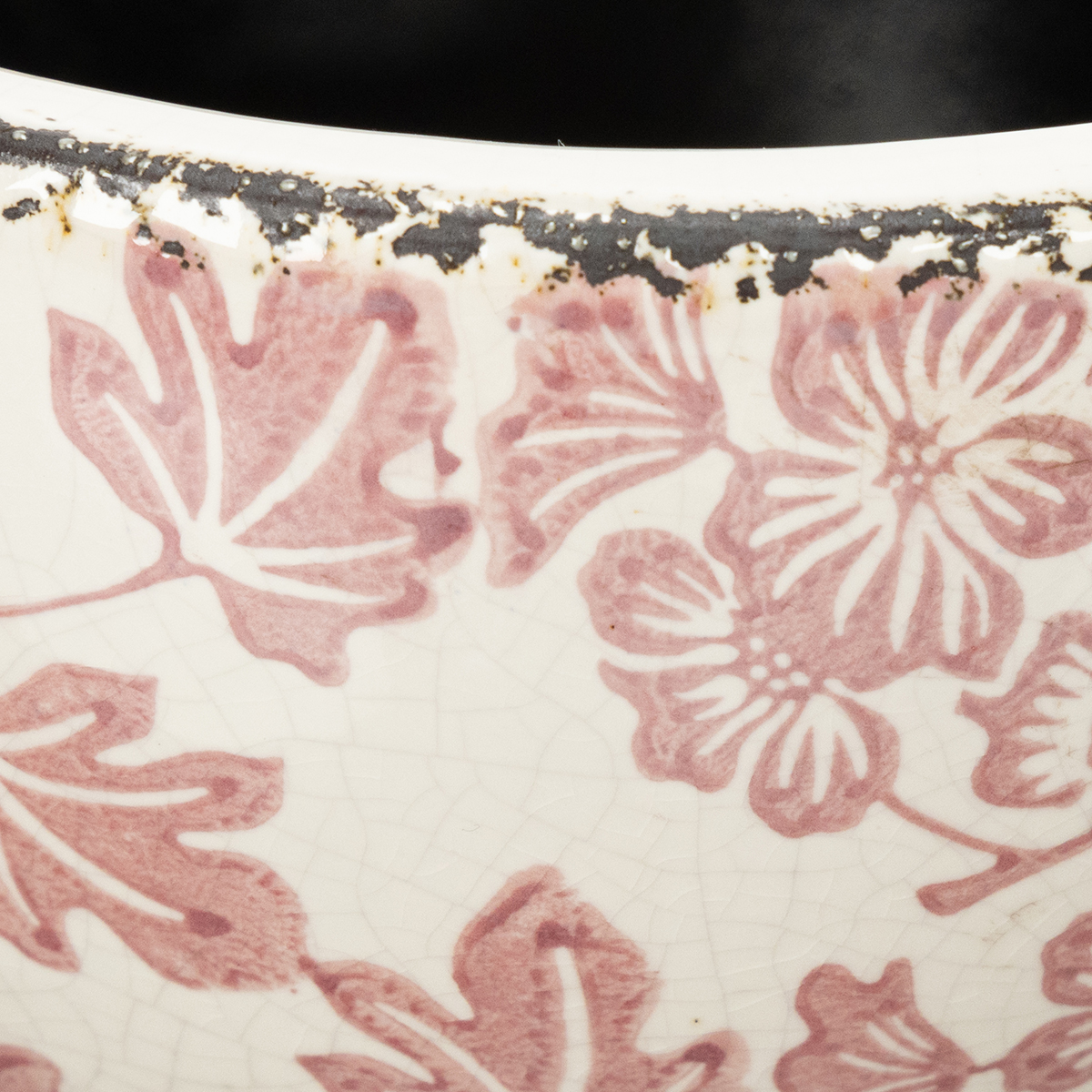 Com seu padrão floral e tons quentes de vermelho e branco, exala um charme nostálgico. Imagine só: que lindo seria plantar nela uma suculenta delicada ou flores coloridas da primavera? Cria instantaneamente uma atmosfera aconchegante e certamente será um ótimo assunto para iniciar conversas com seus convidados. E a melhor parte: é incrivelmente versátil. Use-a como um vaso decorativo, como um toque rústico em uma cozinha campestre ou até mesmo como um presente criativo para amantes de jardins. Simplesmente uma ideia de plantio única pela qual você vai se apaixonar!