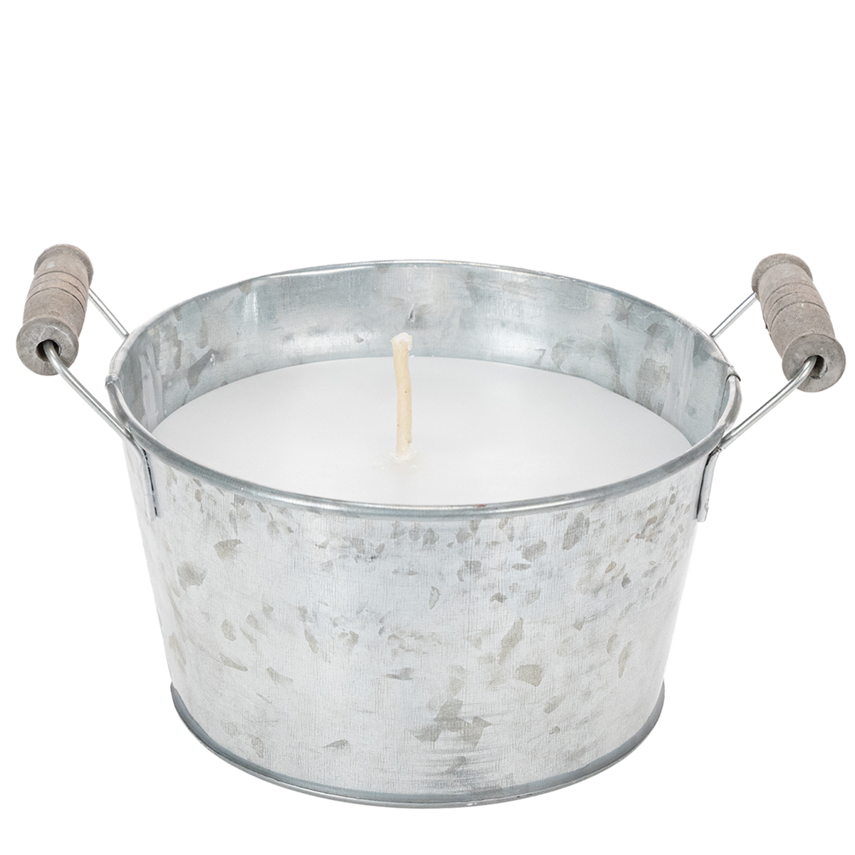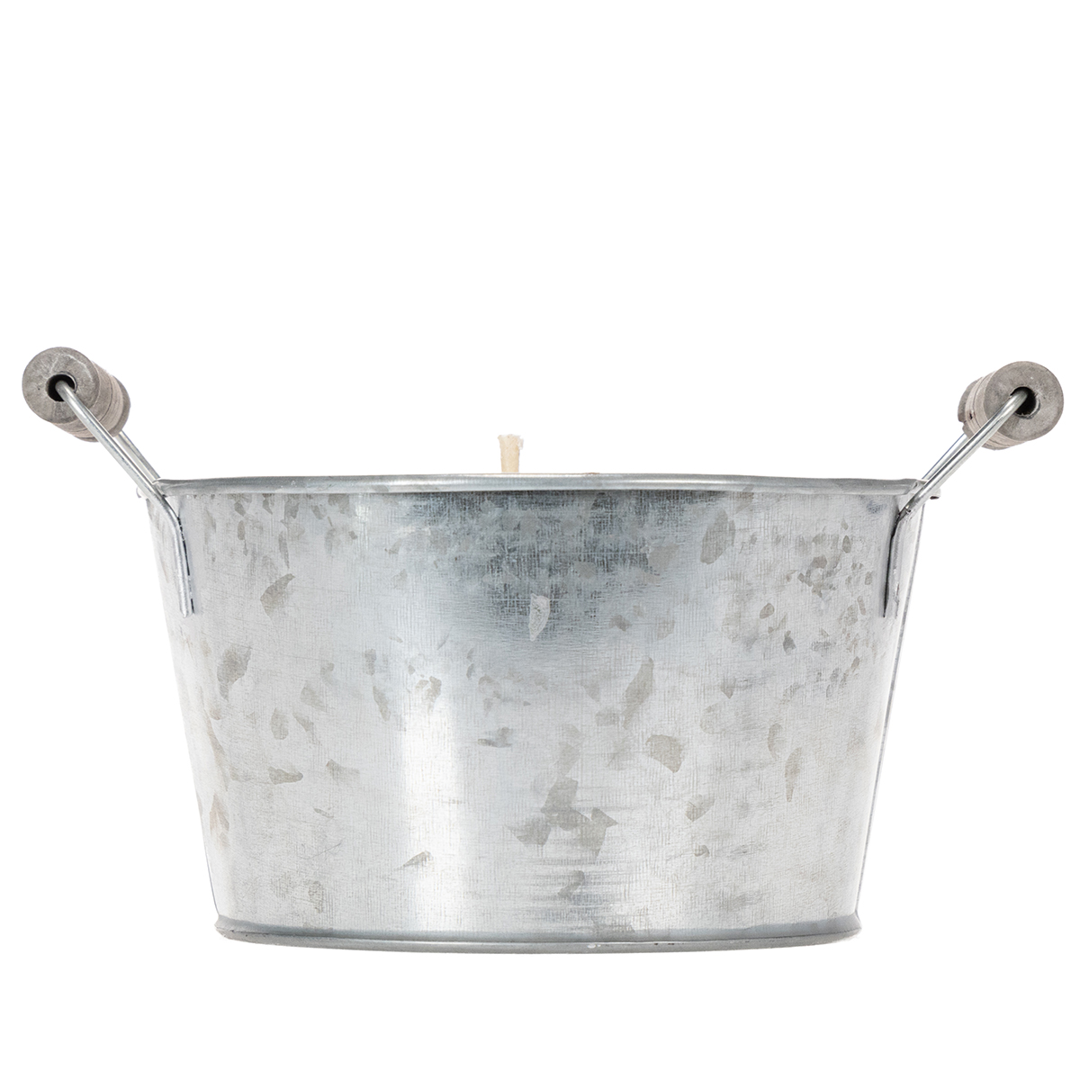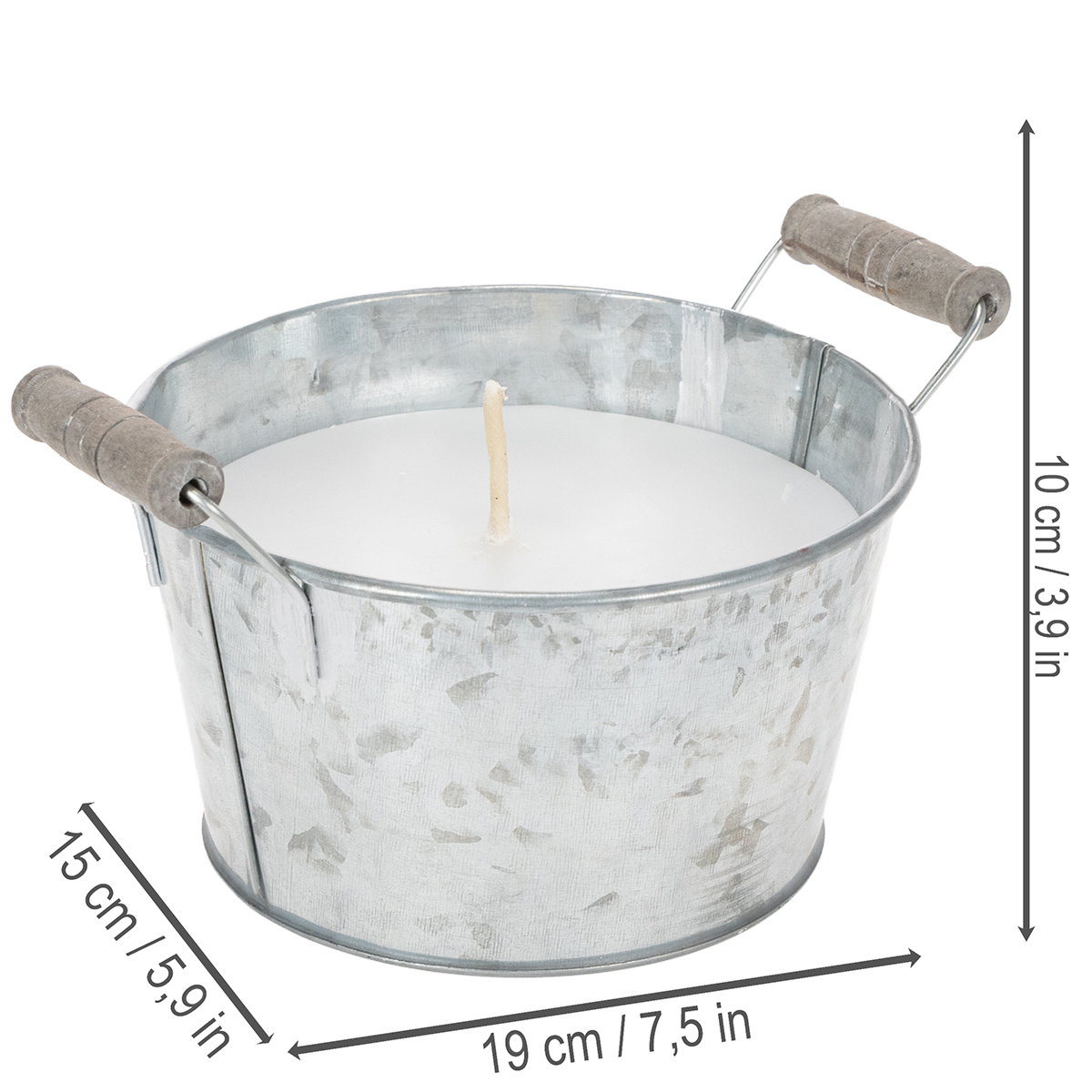Vela em balde de zinco para decoração aconchegante em terraços e varandas, 15 cm.