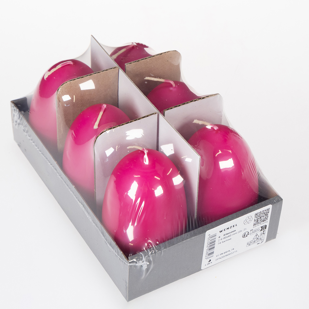 Esta vela em formato de ovo rosa combina toques de cor vibrantes com um acabamento de alta qualidade. Com 9 centímetros de altura e 6 centímetros de diâmetro, é a peça central perfeita para uma mesa de primavera. Seu brilho quente cria uma atmosfera natural e aconchegante, sem ser exagerado. Apesar da cor vibrante, a vela não é totalmente tingida. O brilho sutil da superfície confere-lhe uma elegância moderna que complementa quase qualquer estilo de decoração. Seja qual for a sua preferência, um visual minimalista escandinavo ou algo mais divertido, esta vela rosa em formato de ovo de Páscoa adiciona um toque de cor sem perder a atemporalidade. Para um visual particularmente harmonioso, combine a vela com guardanapos em tons pastel, flores frescas como jacintos ou pequenas figuras de Páscoa. Dica: Nossa vela em formato de ovo também combina lindamente com elementos decorativos prateados ou brancos, trazendo um toque de frescor a arranjos mais simples. Uma característica particularmente conveniente: a embalagem contém seis velas, facilitando até mesmo decorações maiores!