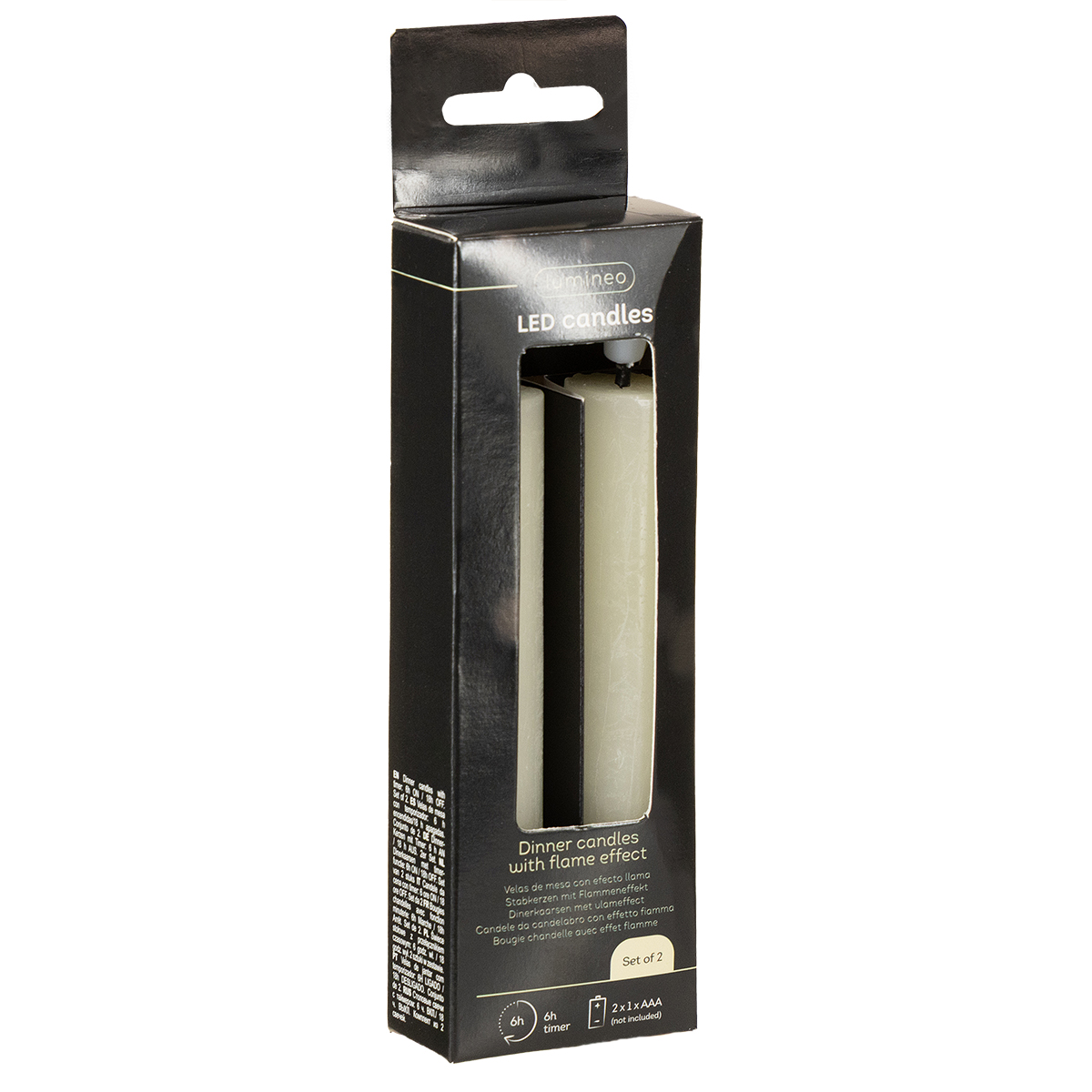 As velas cônicas de LED na cor creme impressionam pelo seu design atemporal e pela agradável luz branca quente, com uma chama que cintila como a luz de uma vela de verdade. Feitas com cera genuína, essas velas parecem incrivelmente reais e são um destaque em qualquer estilo de decoração de interiores, seja minimalista, clássico ou escandinavo. Com um prático temporizador de 6 horas, as velas permanecem acesas pelo tempo que você quiser para aproveitar o ambiente e depois se apagam automaticamente. Isso as torna não apenas incrivelmente práticas de usar, mas também energeticamente eficientes.