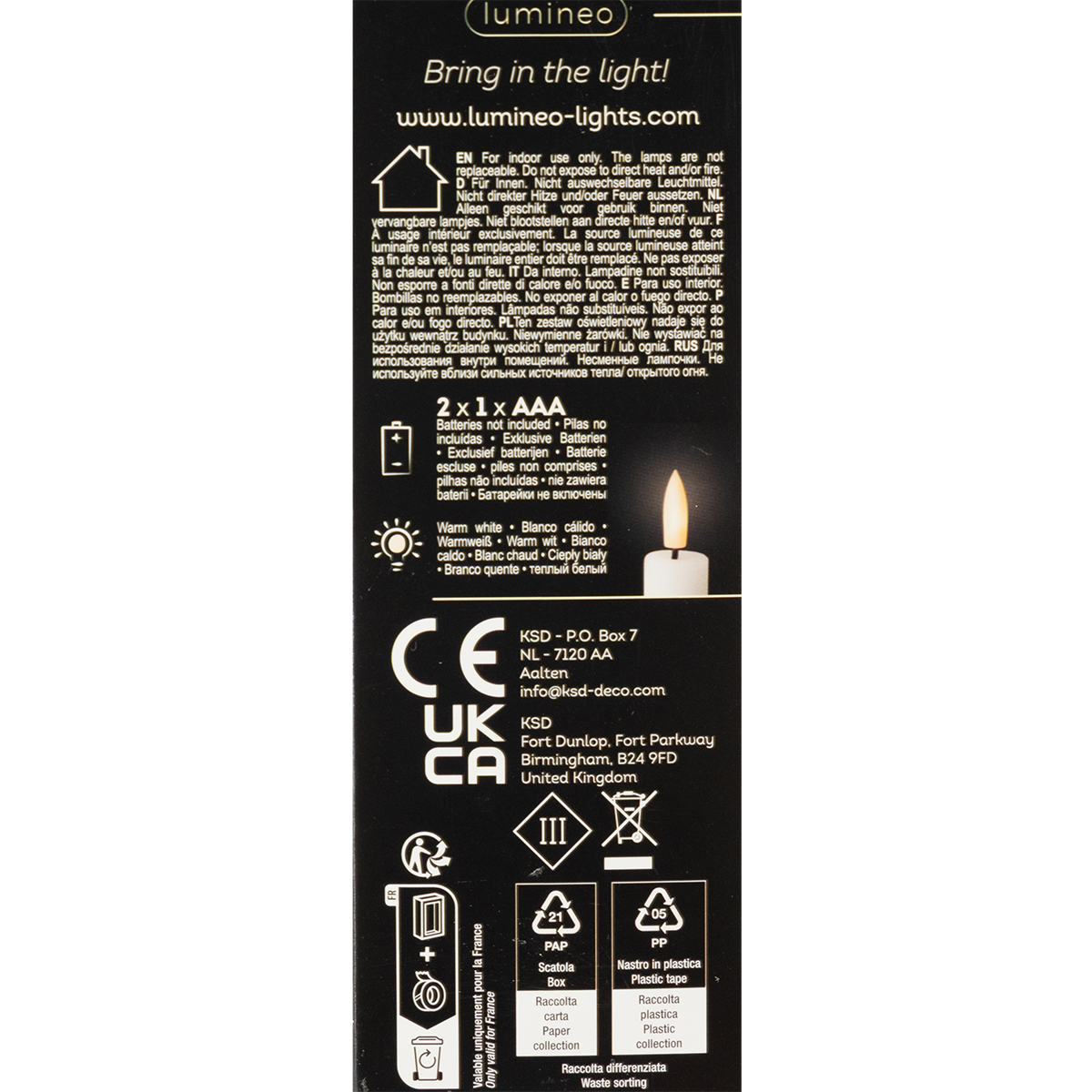 - Uso pretendido: Velas LED para uso interno e externo para decoração e iluminação.