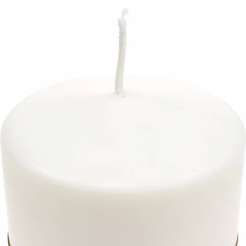 A vela da coluna chega até você em uma embalagem sem plástico com uma banderole de papel. A vela branca tem cerca de 90 milímetros de altura e cerca de 70 milímetros de diâmetro.