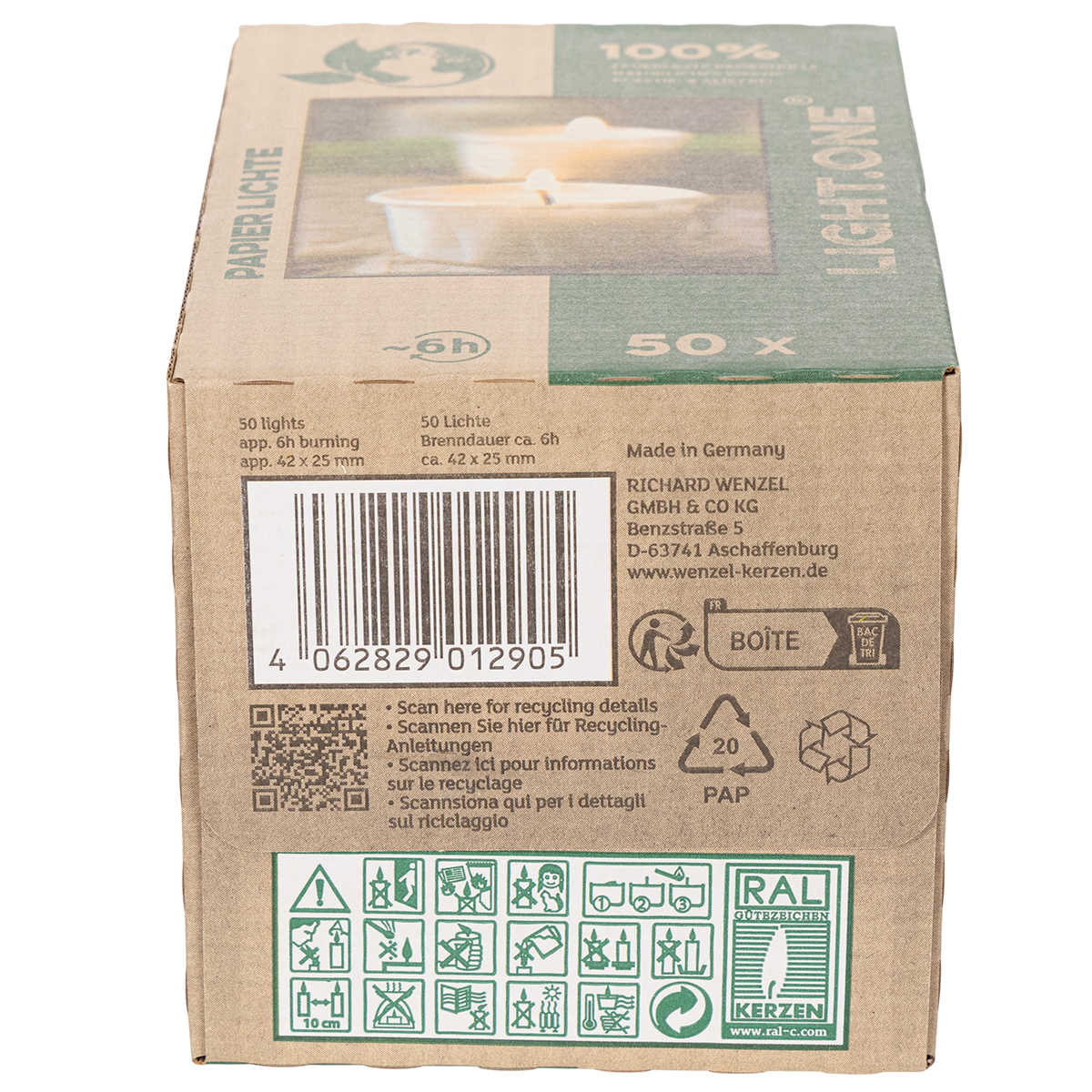 Existe algo mais belo do que o brilho suave de uma vela tealight banhando um ambiente com uma atmosfera acolhedora e convidativa? Seja para jantares românticos, banhos relaxantes ou decorações festivas para a mesa, a vela tealight Light.One, em sua embalagem de papel, adiciona um toque especial a qualquer ocasião. Com aproximadamente 4 cm de comprimento, ela se integra perfeitamente a qualquer decoração. Embalada com elegância em uma capa de papel 100% à prova de fogo, esta pequena, porém requintada vela tealight, traz um toque sustentável à sua mesa. E o melhor de tudo: é livre de plástico e alumínio! Esta vela tealight personifica a naturalidade e a sustentabilidade. Sua queima neutra em carbono é um passo em direção a um futuro mais verde. A cor branca e o design simples combinam harmoniosamente com diversos estilos, sejam eles escandinavos, modernos ou clássicos e elegantes. Deixe sua criatividade fluir, seja para decorações de casamento encantadoras, festas iluminadas no jardim ou um retiro meditativo. Estas velas tealight trazem calor e luz para o seu dia a dia.