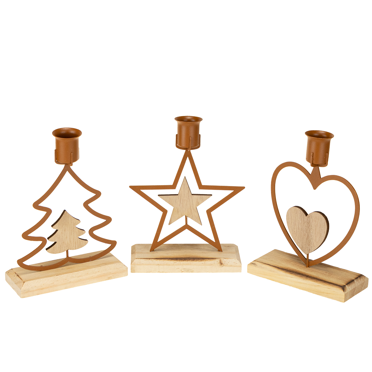 Velas castiçal estrela coração abeto marrom H16.5cm sortidas 3 unidades