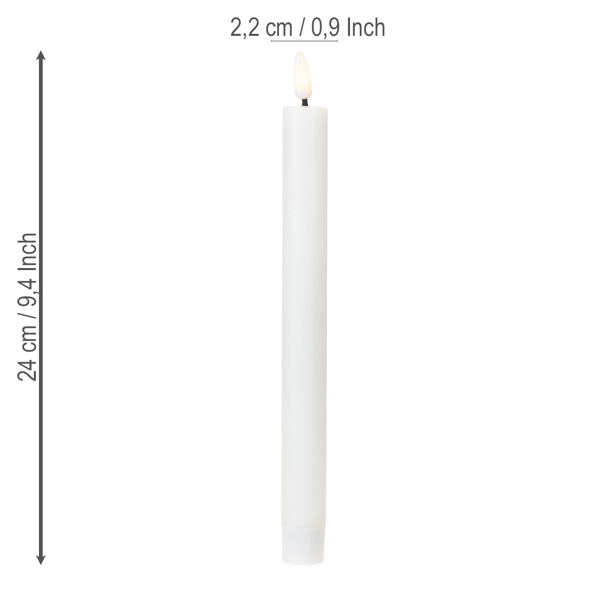 - Nome do produto: Velas LED velas cônicas brancas cera branca quente 24,5 cm 2 peças