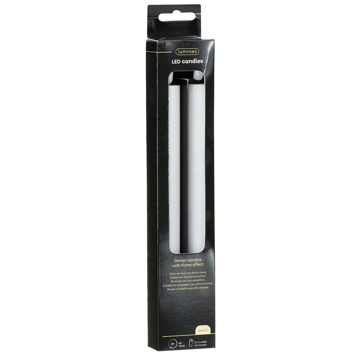 Pilhas por vela: 2 × AAA (não incluídas)