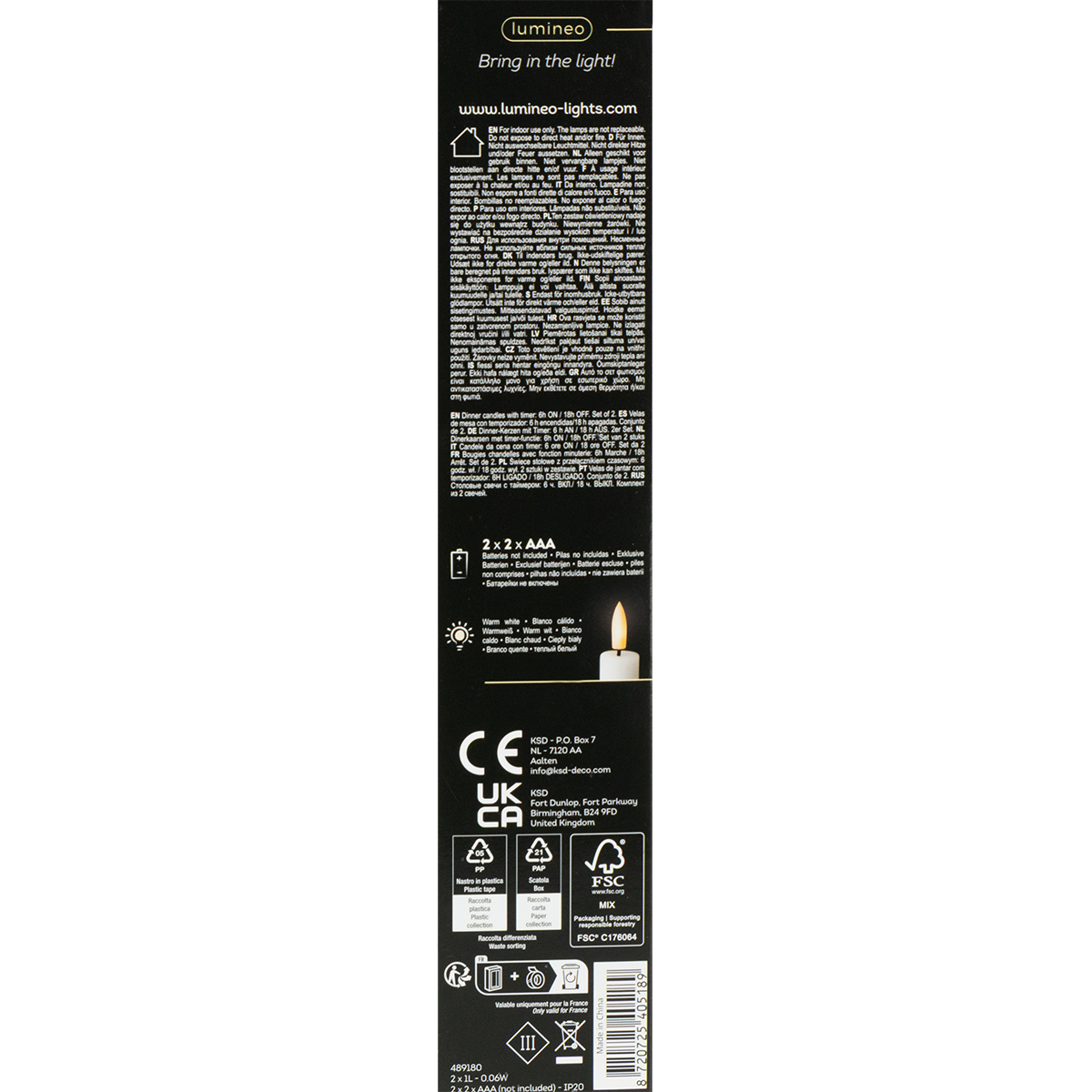 - Velas LED: Descarte de acordo com os regulamentos locais sobre resíduos eletrônicos.