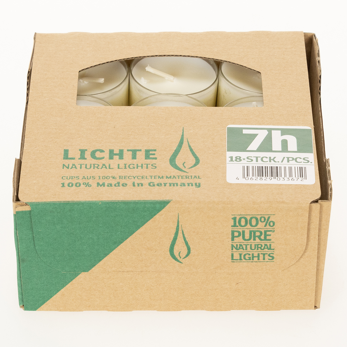 Velas Tealight PURE Nature Lights, Cera de Colza Natural, Tempo de queima: 7 horas, 18 unidades