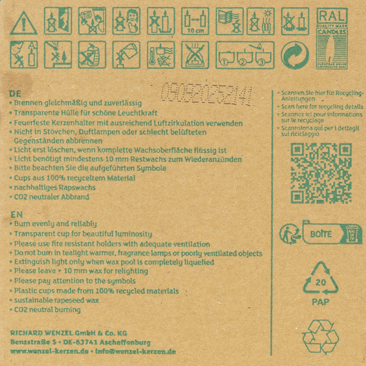 Nome do produto: Velas tealight Pure Nature Lights, com duração de 10 horas, feitas com cera de colza, pacote com 8 unidades.