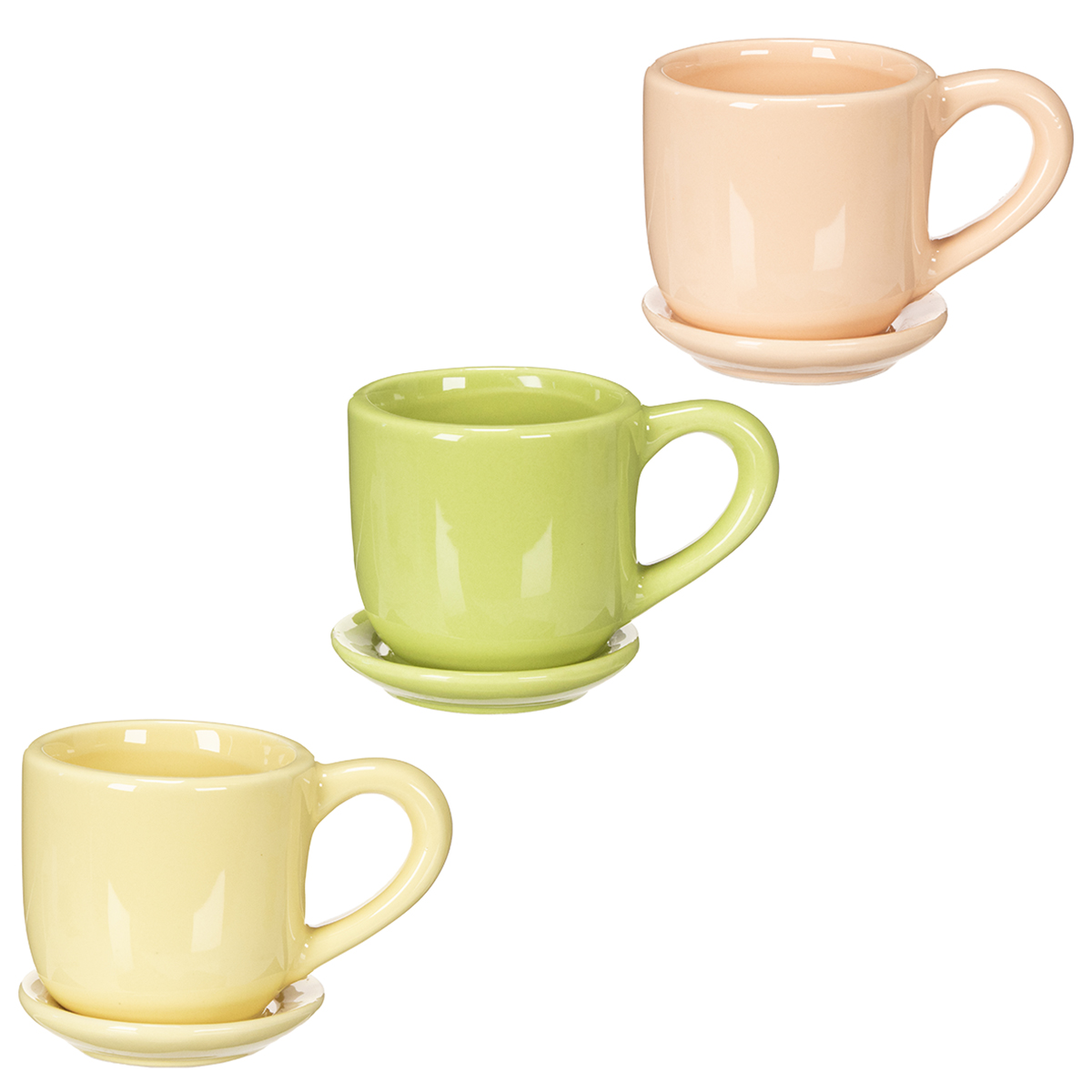 Este conjunto de xícaras de café não é apenas prático, mas também excepcionalmente versátil. O design vibrante em cerâmica nas cores amarelo, verde e laranja adiciona um toque harmonioso sem ser exagerado. Graças ao acabamento de alta qualidade, as xícaras são agradáveis ao toque e prometem longa durabilidade. Seja para um café da manhã tranquilo de fim de semana ou como um elemento decorativo único para sua mesa de jantar, estas xícaras de café são sempre uma companhia elegante. O porta-copos, firmemente fixado a cada xícara, não só evita respingos, como também garante estabilidade. Já pensou em usá-las como vasos criativos para pequenas suculentas ou ervas? Essa ideia adiciona um toque pessoal a qualquer ambiente.