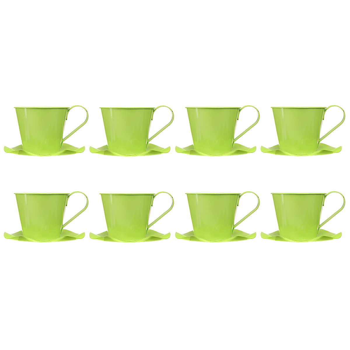 Xícara de chá decorativa em metal com prato verde claro Ø12 Alt.10cm 8 un